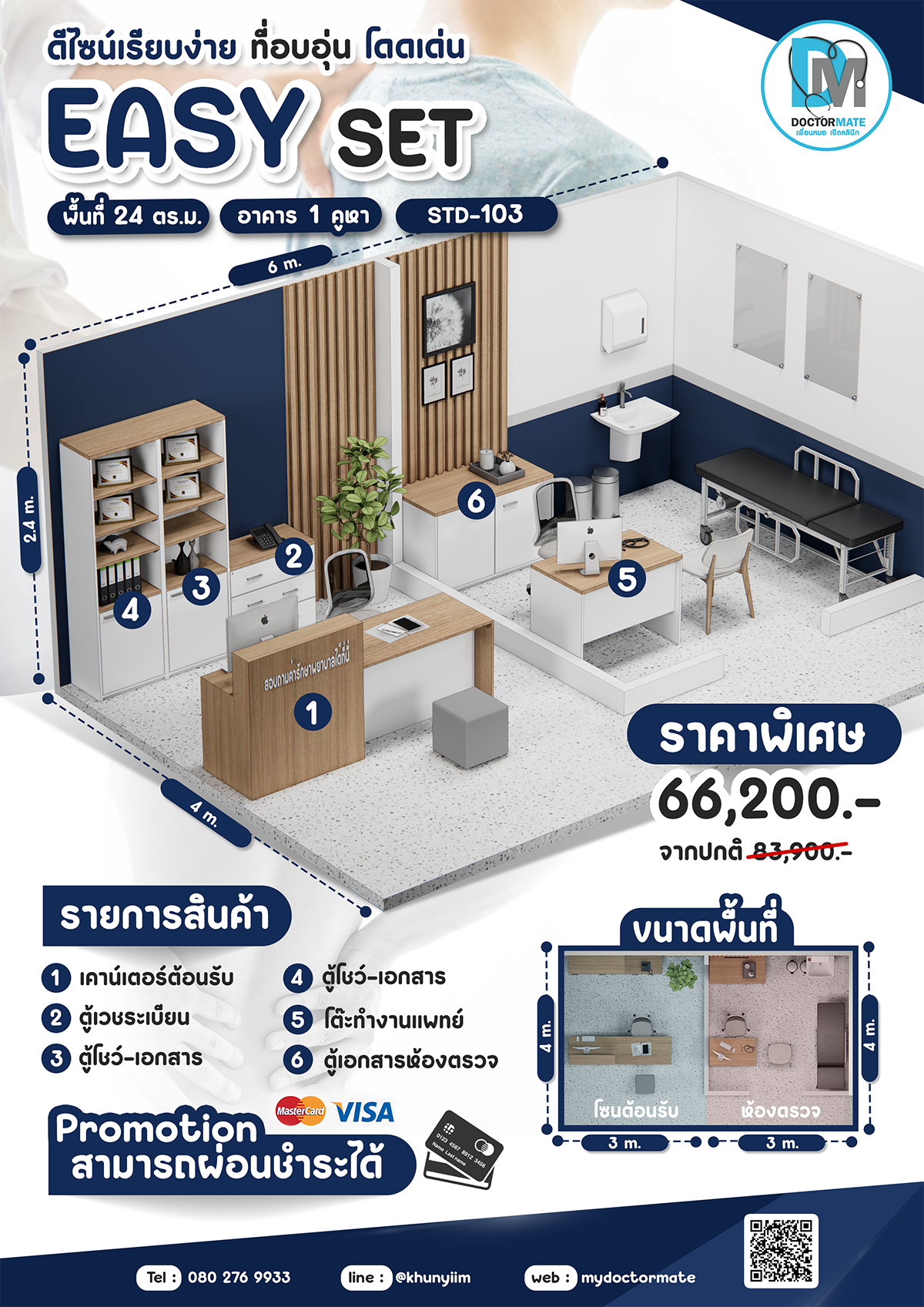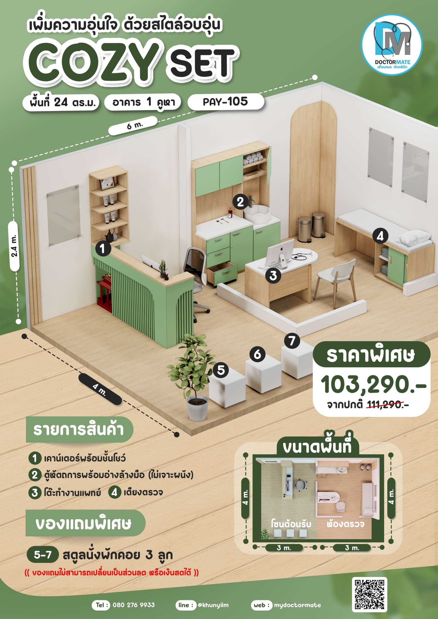 ชุดต้อนรับพร้อมตู้เวชระเบียน และตู้โชว์ สำหรับพื้นที่เล็ก พื้นที่ไม่มาก เน้นง่ายสะดวก ไม่ต้องคิดเองไม่ต้องคิดเยอะ เพราะเราคิดให้ พร้อมจับ SET เบาๆ ให้คุณหมอได้ลองจับจอง เลือกได้ตามเหมาะสมนะคะ พื้นที่เป็ฯแบบไหนเหมาะกับสไต์ได้รวมมาให้ถึง 10 SET 10 STYLE พร้อมโปรดีๆกว่าซื้อแยกชิ้น จัดส่งได้ทั่วประเทศ ไม่ต้องติดตั้งง่ายสะดวก หมดปัญหากวนใจ