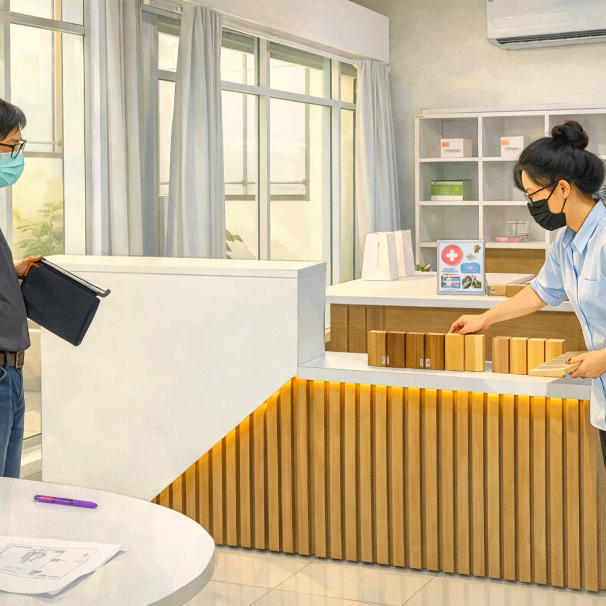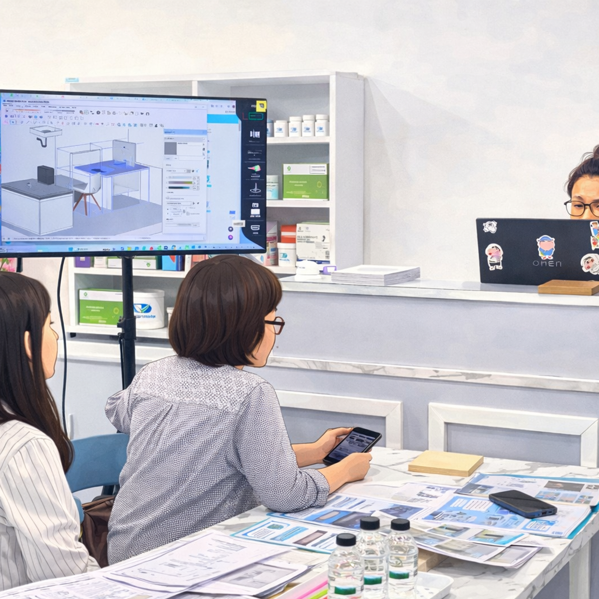 เราสามารถจัดพื้นที่ ให้ใกล้เคียงกับโซนในคลินิกของคุณหมอ ให้คุณหมอได้ลองยืน ลองมอง ลองนึกภาพการใช้งานจริง ซึ้งคุณจะรู้เลยว่า สิ่งที่เราคิดและวางแผนมานั้นว่า