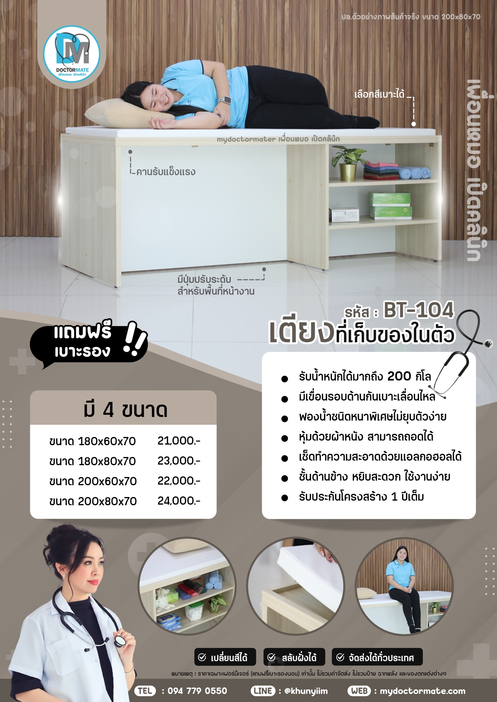 เตียงอเนกประสงค์สำหรับคลินิก (งานเฟอร์นิเจอร์กึ่งบิ้วท์)