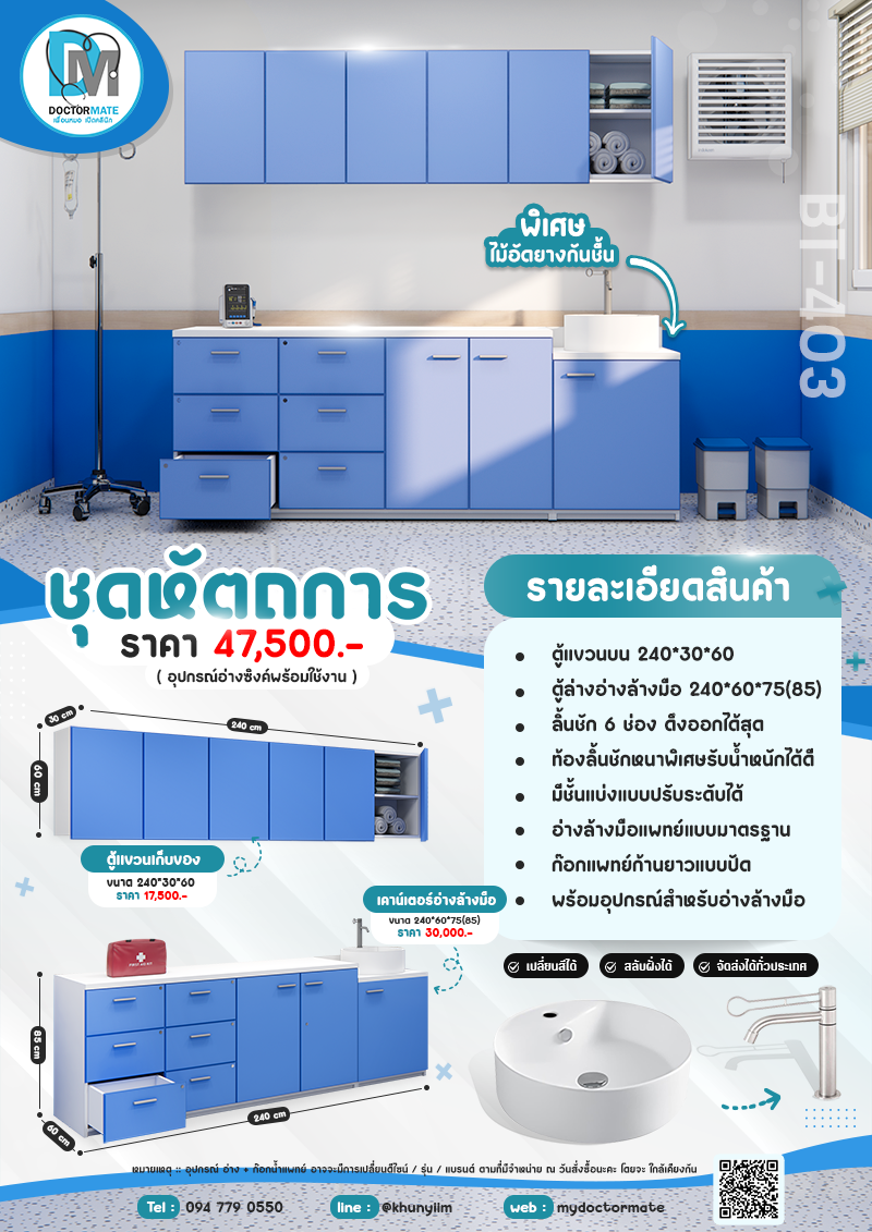 หมวดหมู่ : set recommend ,  ชุดหัตถการ (ตู้บน+ตู้ล่าง+อ่าง) ,  ห้องตรวจ ,  ชุดหัตถการ (ตู้+ตู้แขวน+อ่างล่าง) ,