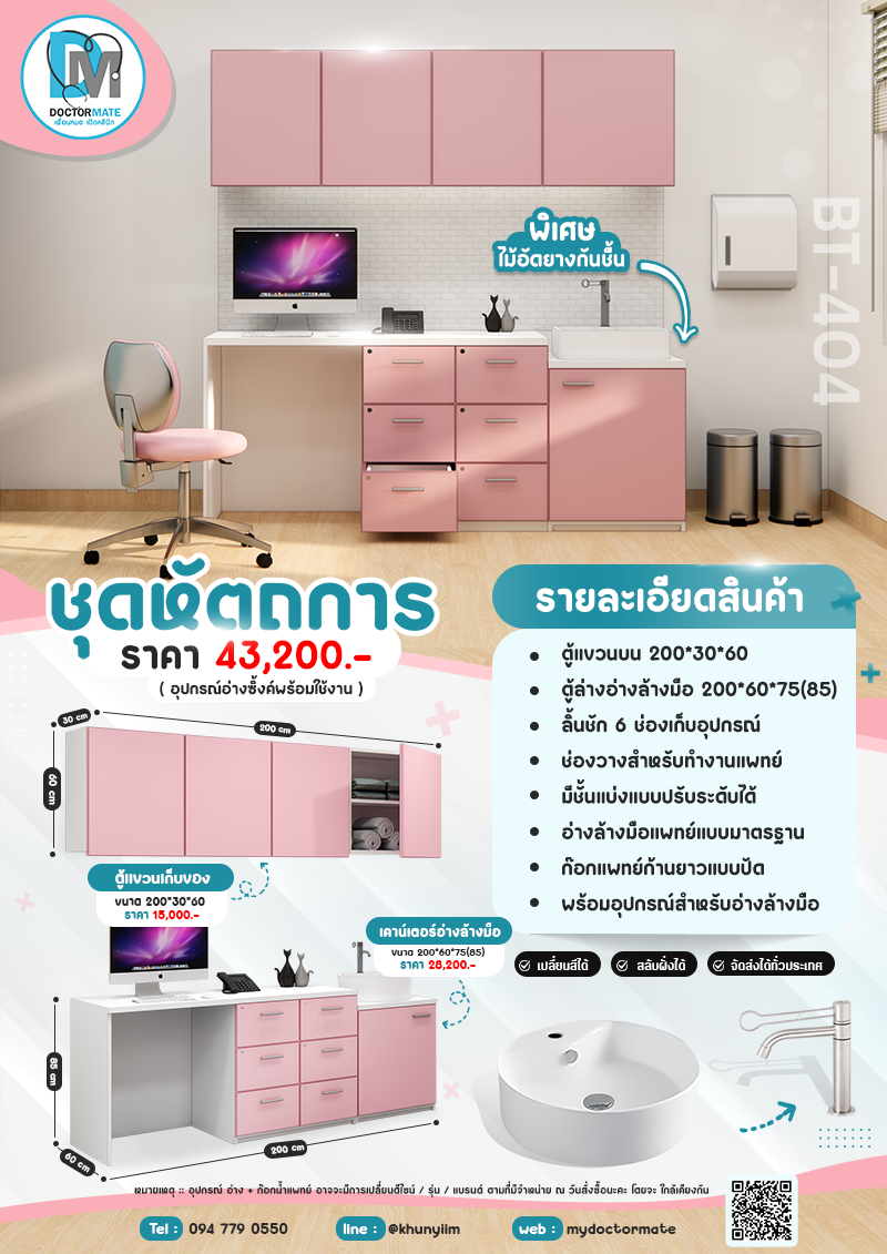 หมวดหมู่ : set recommend ,  ชุดหัตถการ (ตู้บน+ตู้ล่าง+อ่าง) ,  ห้องตรวจ ,  ชุดหัตถการ (ตู้+ตู้แขวน+อ่างล่าง) ,
