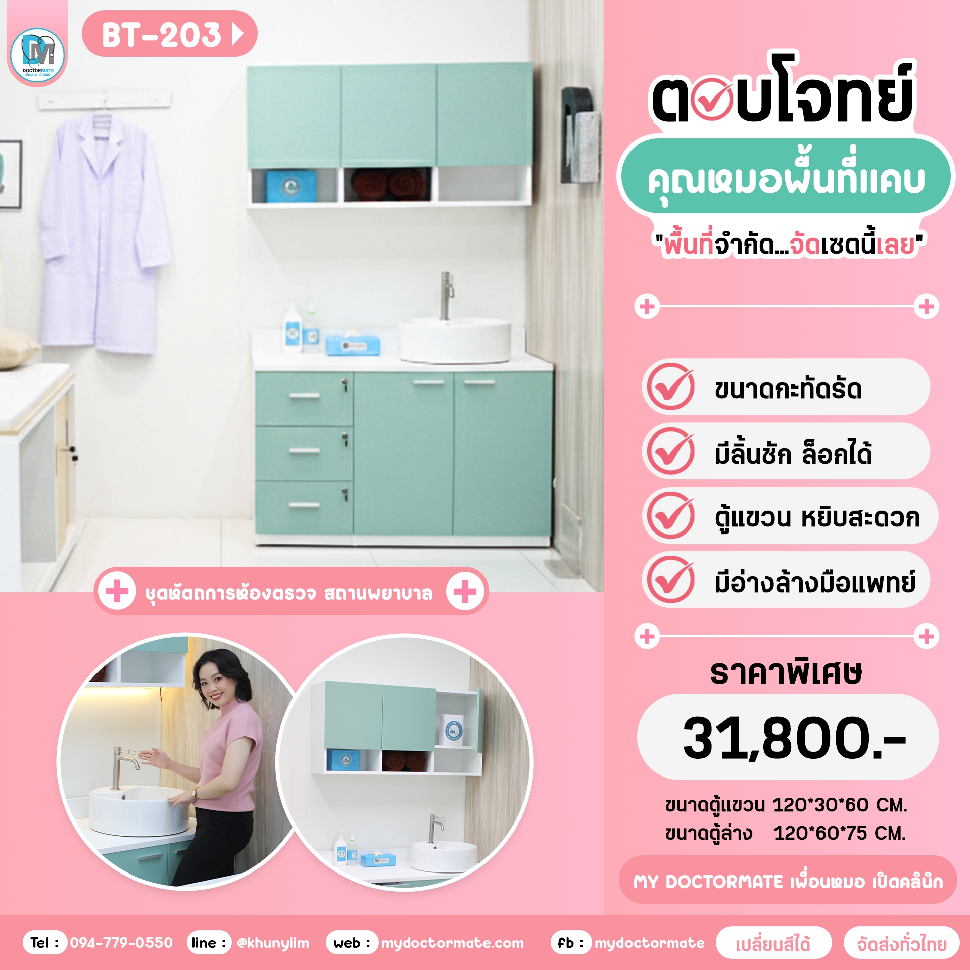 ตู้เก็บของในห้องหัตถการ พร้อมตู้แขวนเข้าชุด (ราคารวมอ่าง + ก็อก)