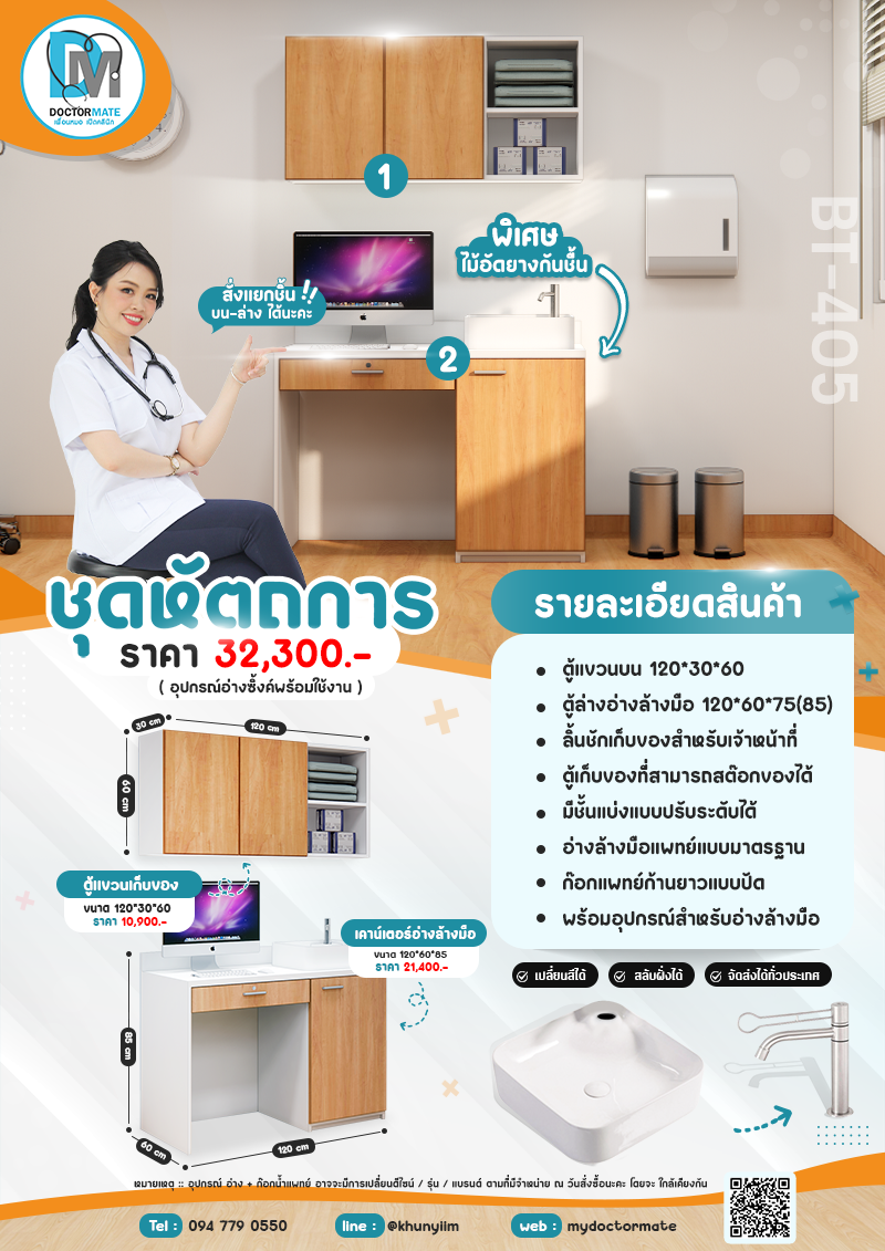 หมวดหมู่ : set recommend ,  ชุดหัตถการ (ตู้บน+ตู้ล่าง+อ่าง) ,  ห้องตรวจ ,  ชุดหัตถการ (ตู้+ตู้แขวน+อ่างล่าง) ,