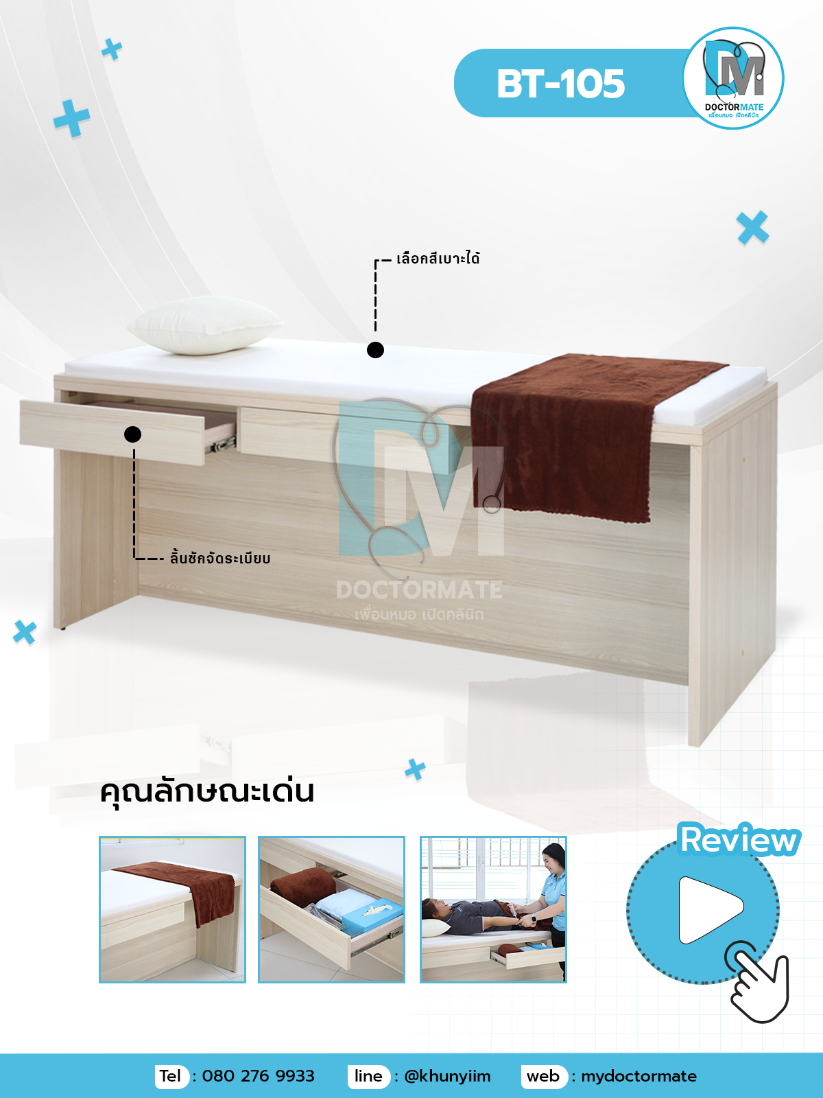 | ประเภท | เตียงอเนกประสงค์สำหรับคลินิก (งานเฟอร์นิเจอร์กึ่งบิ้วท์) |
